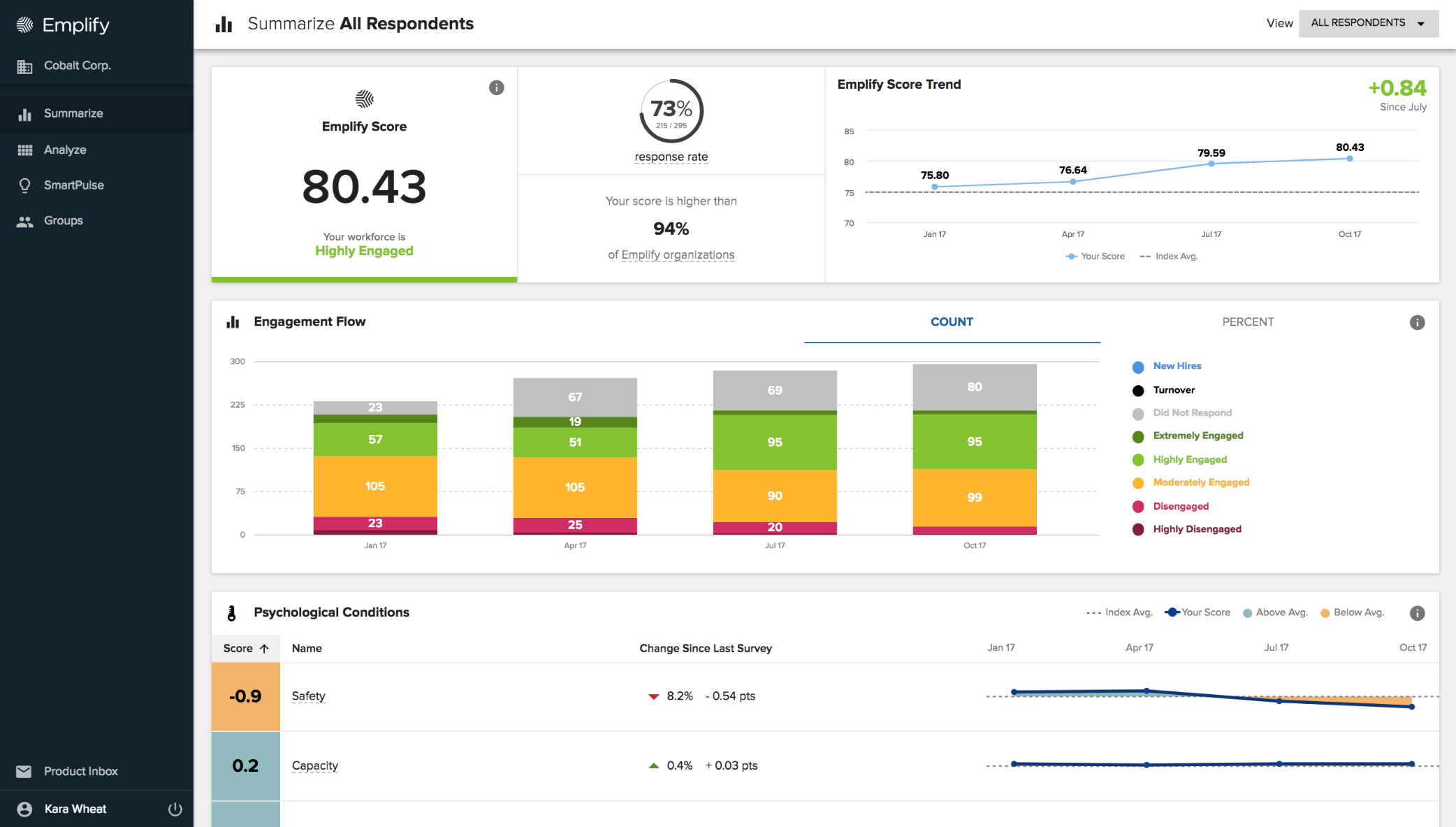 “Our company was going through a lot of transformation. The changes were stressful for our people, and our people are critical to our business. Recruitment of engineering talent is always difficult and onboarding is costly, so retention is important. I needed a tool to keep the pulse on how our people are doing.”