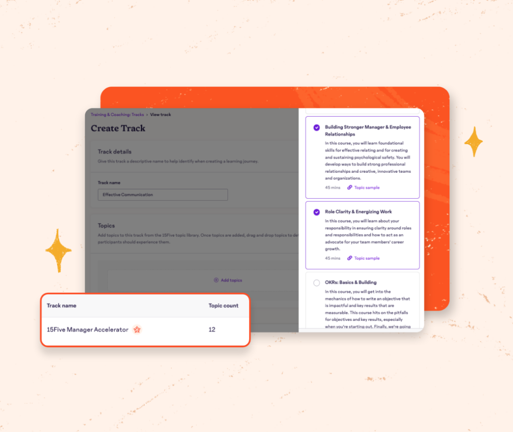There’s also the option to get started right away with recommended tracks from 15Five: