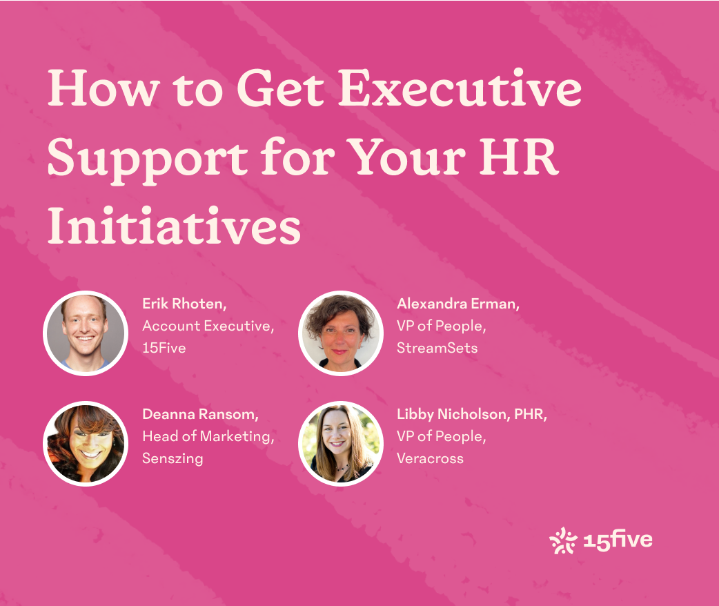 Join 15Five’s panel discussion with executives and strategic HR leaders for a conversation about how to successfully gain support from executives for important HR initiatives.