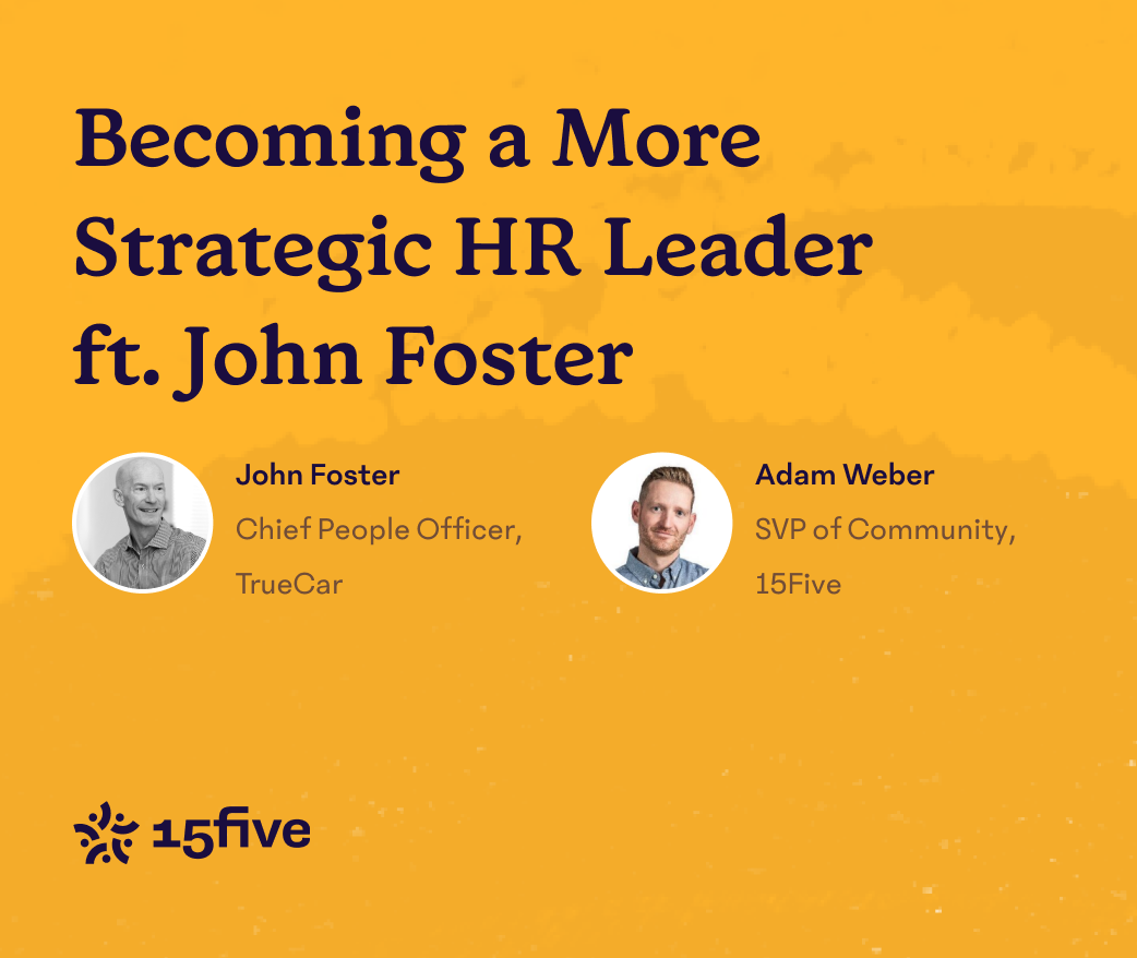 Welcome to the premiere of fireside chats hosted by 15Five’s HR Superstars Community! In this webinar, we will dive into what it takes to uplevel your strategic thinking as an HR leader. Adam Weber, SVP of Community at 15Five and former Chief People Officer (CPO) at Emplify, will interview one of the most strategic HR leaders in the industry, John Foster.