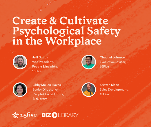 Tune in as Jeff Smith, VP of People Strategy & Insights at 15Five lead a panel discussion on the state of psychological safety today, and why organizations should care about it.