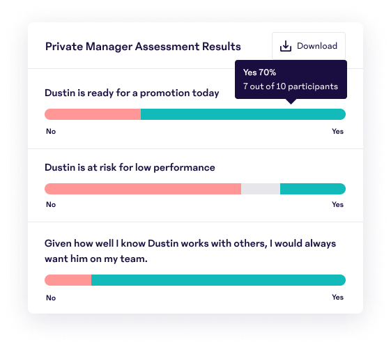 See how managers assessed their team members to better understand company-wide performance