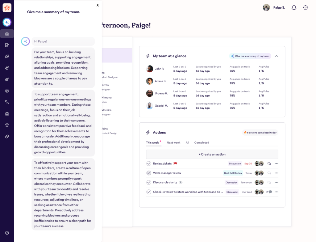This holistic view empowers leaders with an aggregated perspective on team performance and engagement. Most importantly, it equips managers with answers to the crucial question: “What action should I take right now to support my team effectively?”