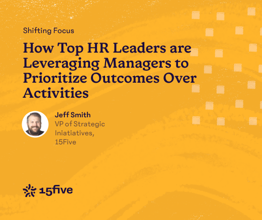 Dr. Jeff Smith, 15Five’s VP of Product, and author of The Meaningful Manager: How to Manage What Matters. Jeff will share what 15Five has learned from strategic HR leaders about how they have successfully prioritized outcomes over activities by focusing on creating effective managers. He will share strategies for measuring and tracking outcomes, identifying areas for improvement, and aligning HR initiatives with overall business goals.