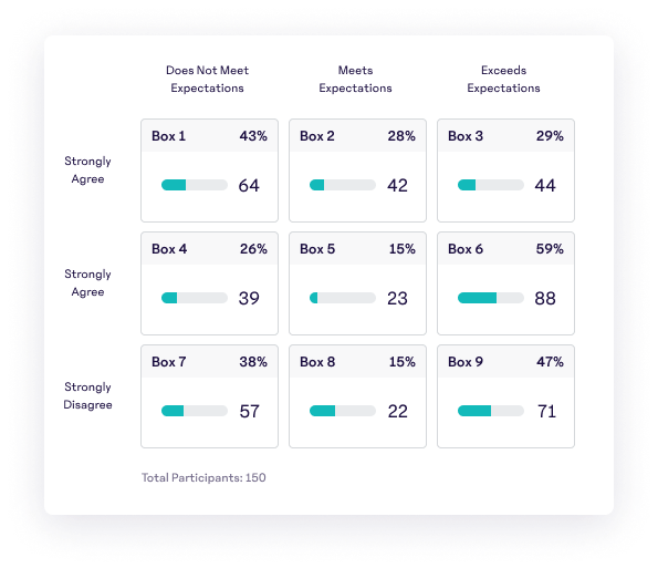 Create a custom 9-box to make smarter decisions related to pay, promotions, and organizational performance. In fact, some customers call this an ‘n-box’ because you can create the matrix that best suits your needs.